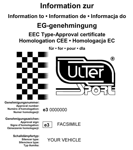 Qui puoi scaricare il certificato di omologazione per il tuo scarico Ulter Sport